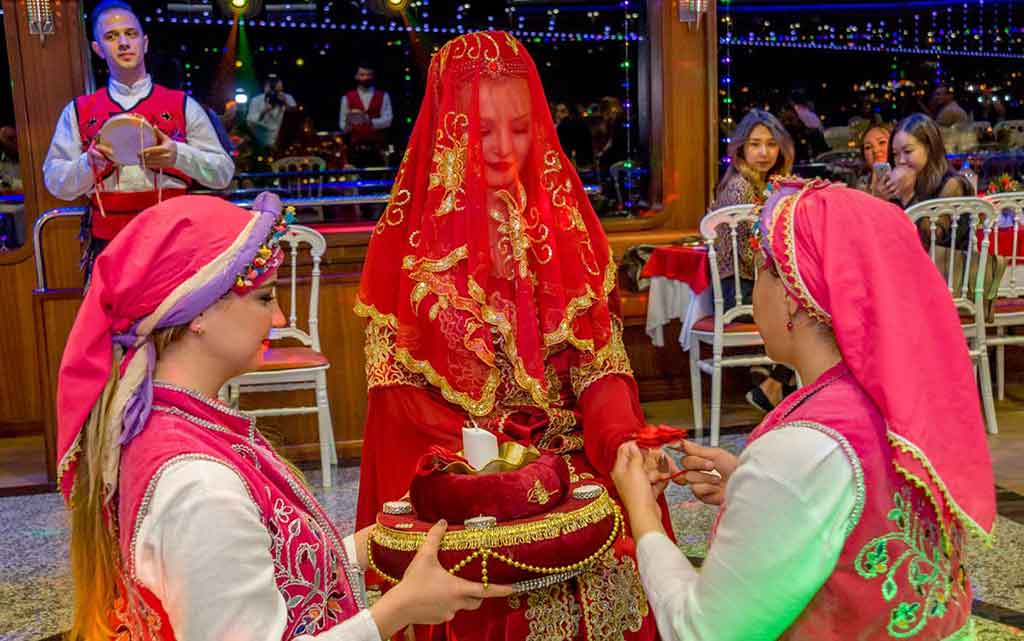 • 3.5 hours evening dinner cruise of the Bosphorus, right in between Europe and Asia