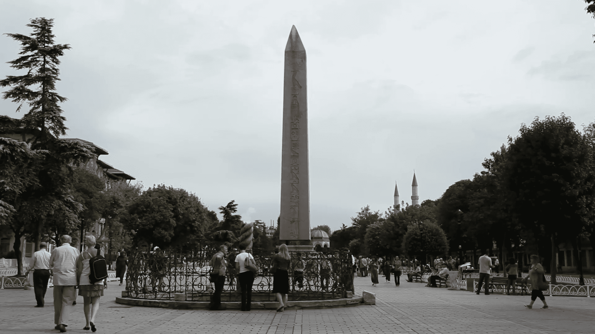 The scene of ancient chariot races, the ancient Hippodrome, with its four monuments; the GERMAN FOUNTAIN OF WILHELM II, the OBELISK OF THEODOSIUS, the bronze SERPENTINE COOLUMN and the COLUMN OF CONSTANTINE.